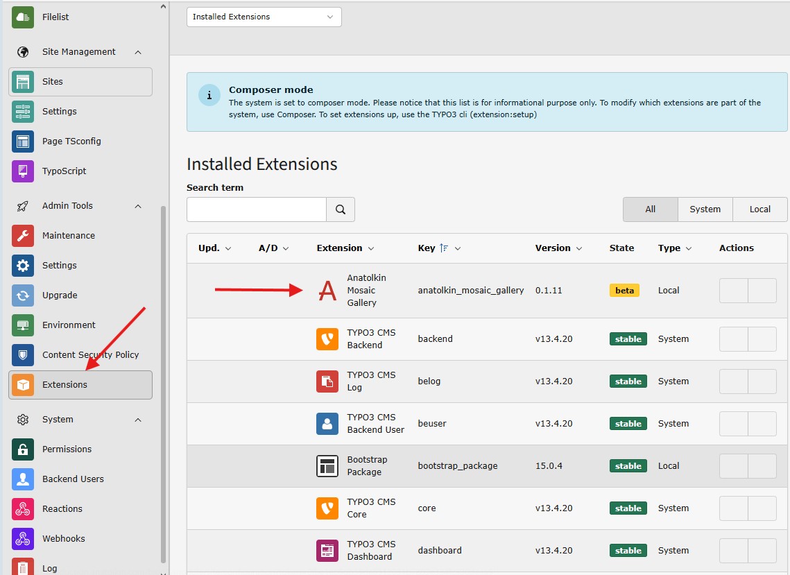 Anatolkin Mosaic Gallery extension for Typo3 v.13