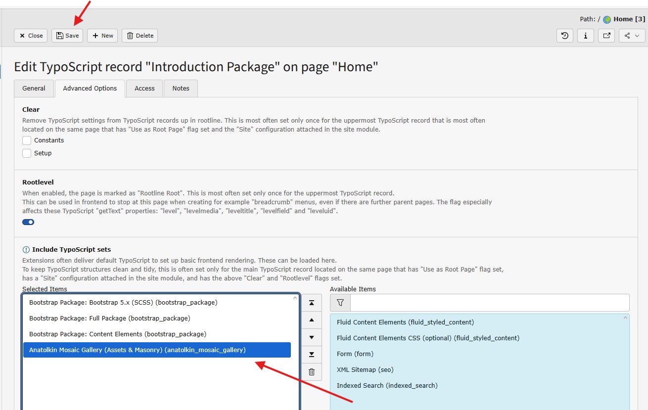 “Anatolkin Mosaic Gallery (anatolkin_mosaic_gallery)” to the Included static templates list. - Save.
